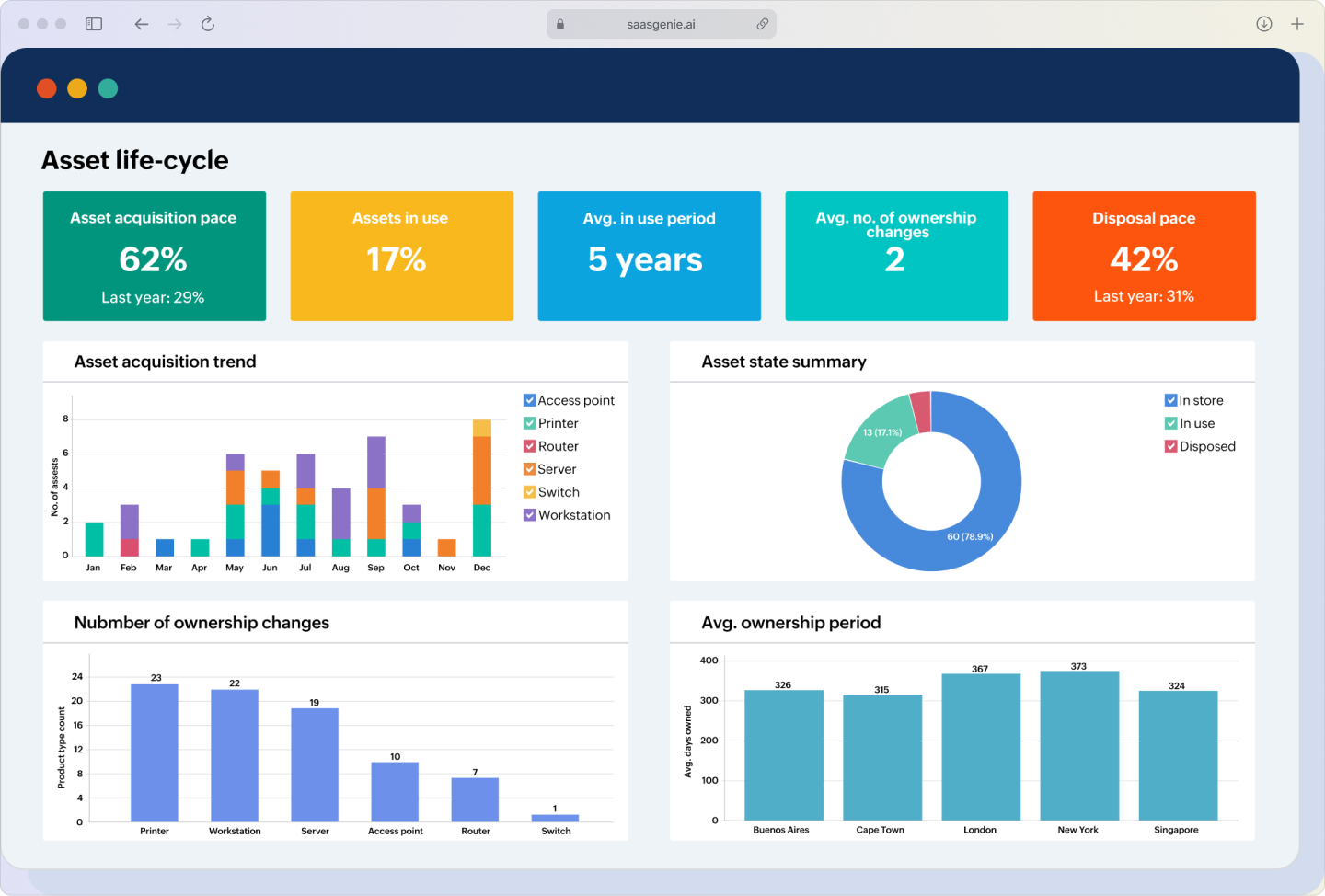 - Location monitoring: Shows where each asset is located and who's using it.